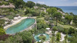 度假村座落在高原懸崖上,擁有視野壯闊、景色浪漫的懸崖海景。一旁的石灰岩峭壁緩緩探入海中,此天然如畫景觀堪稱美絕。 開業於2009年6月,位於峇里島南海岸線布及半島的山崖上。 每棟別墅都經過精心設計,非常重視與天然環境的結合,擁有獨立游泳池,以及可飽覽印度洋美景的發呆亭。婚禮場地用了木頭、流水、石頭和藤條,讓海風輕輕的吹拂過每個角落,且讓賓客能欣賞一片湛藍的海景。