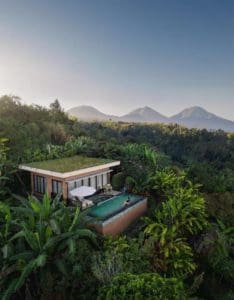 Nirjhara 將現代建築和現代舒適與真正的當地影響融為一體,無縫融入其環境。 巴厘島的這個生態度假村結合了可回收木材、來自整個群島的天然石料和傳統的 sirap 屋頂,營造出一種目的地感,讓旅行者感到身臨其境。