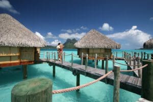 波拉波拉島瑞吉度假村是大溪地最高檔的渡假村之一,佔地廣、房型多樣,不只能欣賞潔白沙灘和碧藍潟湖,Otemanu山的景色也一覽無遺,吸引好萊塢女星妮可基嫚在這度蜜月。住在這裡,您配有一位頂級管家,無論吃的、用的都貼心照顧,而且渡假村內有米其林三星主廚開設的法式餐廳,還有水療按摩、免費租借浮淺設備等服務,讓您享受巨星般的待遇。